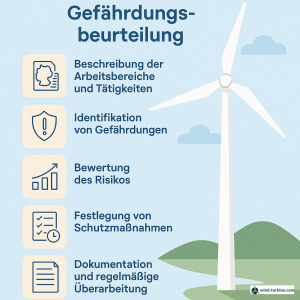 Den Risikovurdering (GBU) i vindindustrien er et centralt element i sundhed og sikkerhed på arbejdspladsen og tjener til systematisk identifikation, evaluering og Reduktion af farer, som arbejdstagerne udsættes for under deres arbejde er. For operatører af vindmøller er GBU lovpligtig og en del af sikkerhedskonceptet inden for rammerne af Bekendtgørelse om sikkerhed og sundhed på arbejdspladsen (BetrSichV).