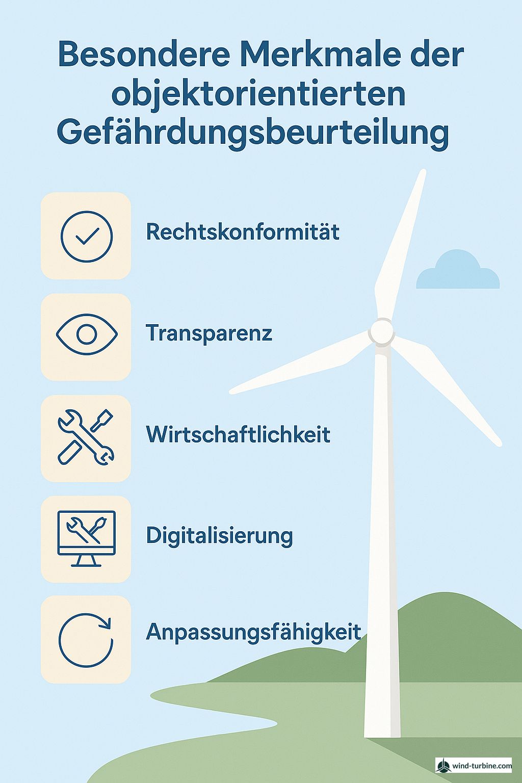 En innovativ tilgang i vindindustrien er de såkaldte objektorienterede Risikovurdering. I denne proces digitaliseres den klassiske GBU og konverteres til en objektrelateret, systematisk struktur . Grundlaget for denne Fremgangsmåden er at opdele vindmøllen i individuelle "Objekter" såsom: