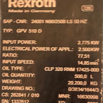 Gearkasse / drivlinje til Nordex N90 BETA | Nordex Rexroth GPV 510 D