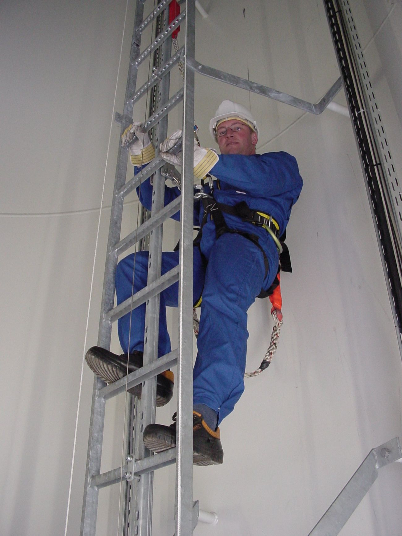 Løsningen er klatrestøtten LW50, der gør det meget nemt at klatre op. Også værktøj og smådele kan tages op og ned med LW50.