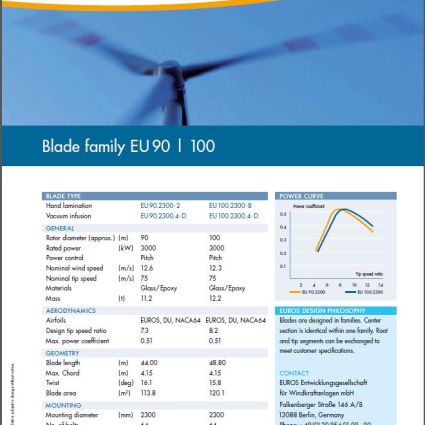 har en rotordiameter på 100 m og leverer en nominel effekt på 3000 kW. Kraften