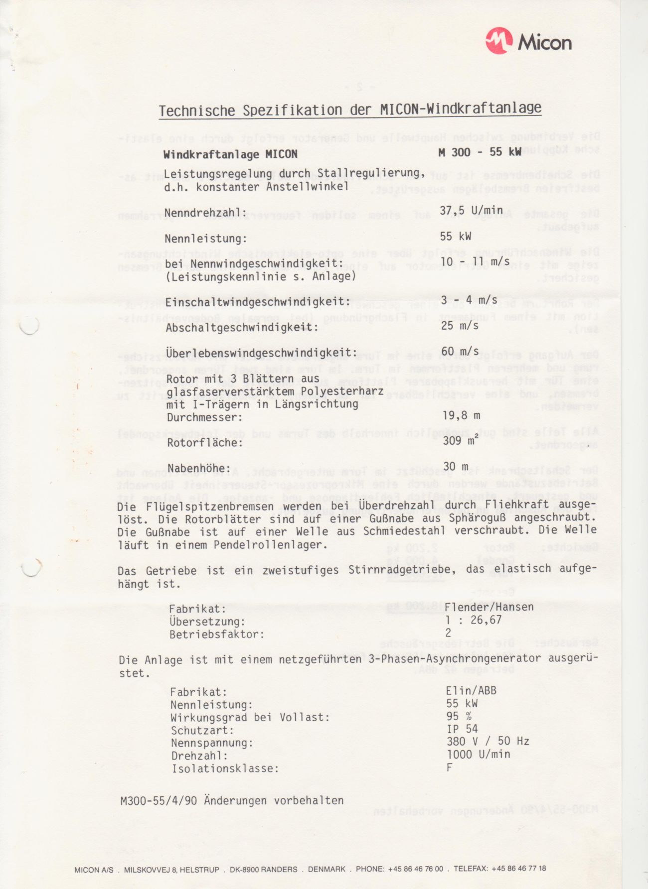Micon M300 55kW til salg.